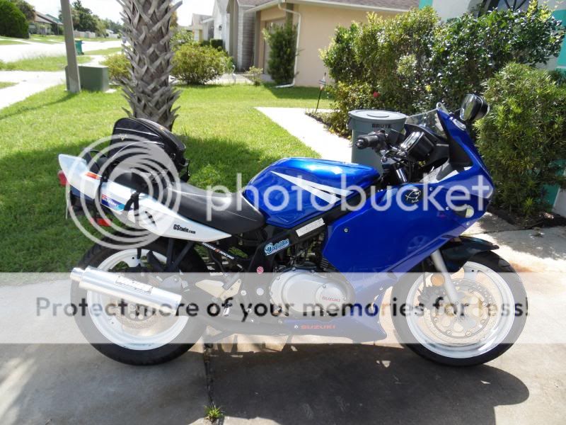 2004 F, Fenderectomy, barends, gsxr-pegs, pro grip gel covers, 15th JT sprocket, stock decals gone,custom chain guard,GSXR integrated mirrors, flush mount signals, 150 rear tire,white rims, rebuilt top end, V&H Exhaust, Custom heel and chain guard (Adidasguy)
