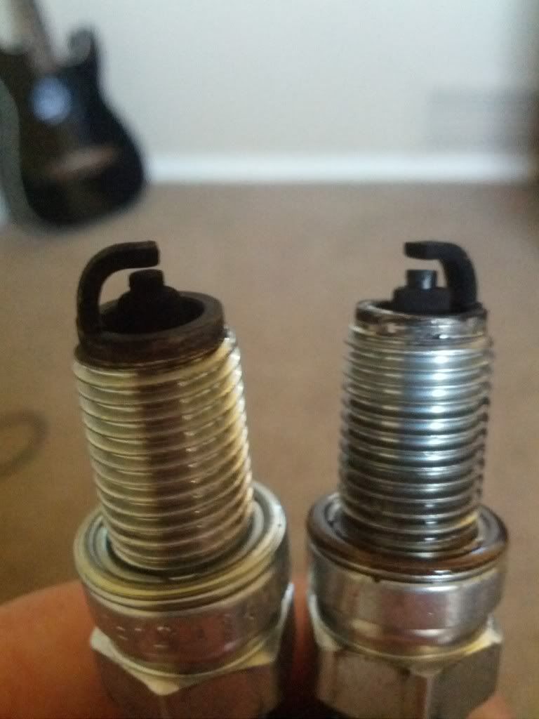 Also heres a pic of the spark plugs. I am getting a new battery later today and I will replace the spark plugs when I have the battery.