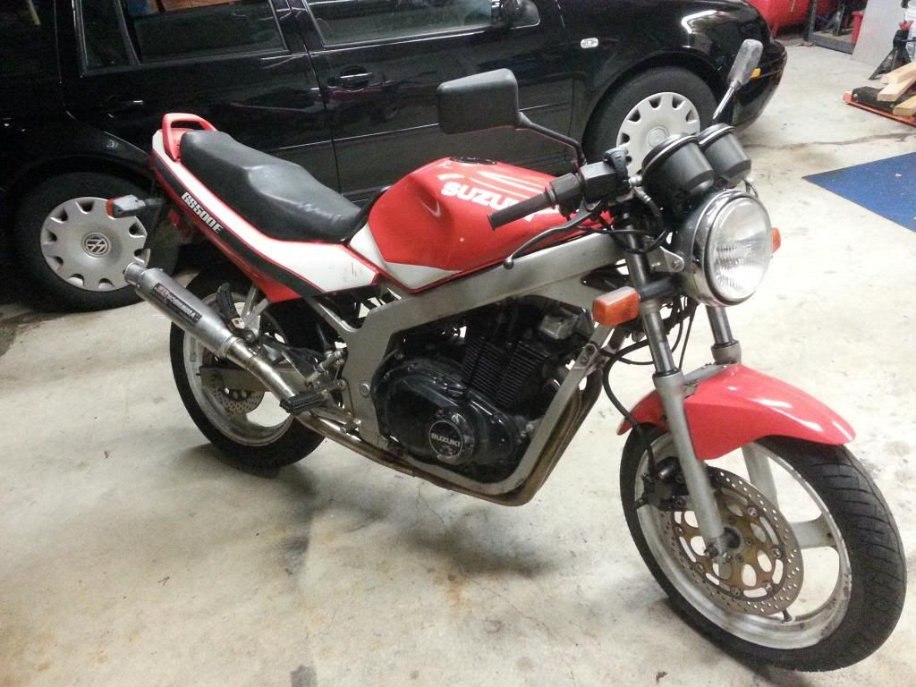 Found a full stainless yoshimura setup on ebay, lunchbox filter installed, decals on tank, new rubber, been riding it for a few weeks now.