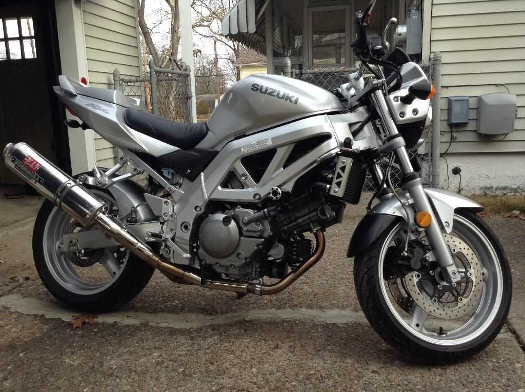 A barely broken in 2003 SV650n with 4375 miles, new tires last year, Yosh slipon, Racetech emulators, frame sliders and swing arm spools, fender eliminator, LED rear turn signals, bar end mirrors, power commander, gel seat, extended front fender and rear hugger.