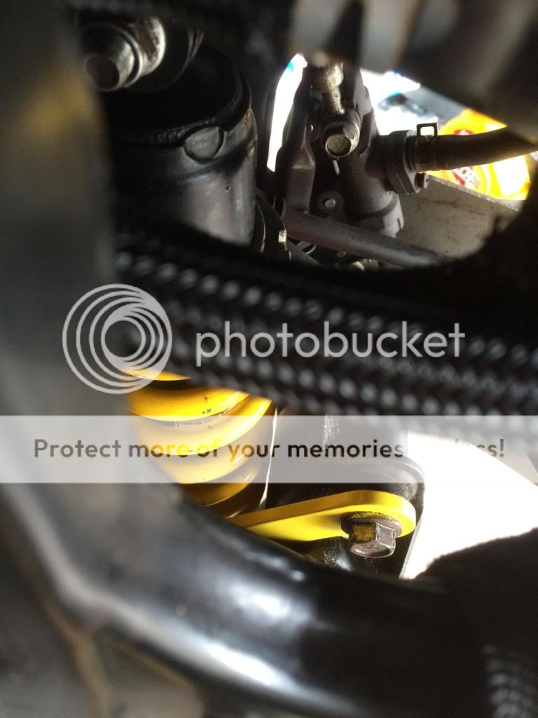 Note the bare minimum clearance between the shock and swingarm. With stock bones, the arm rode the coil.