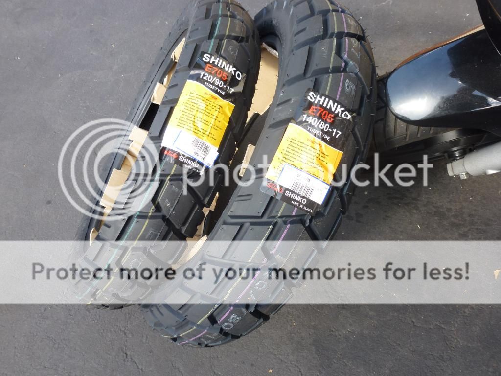 Tire Comparison, Stock vs Shinko 705's. BTW, be careful with old tires. I see a lot of cracking in mine though the rubber has much treads left: