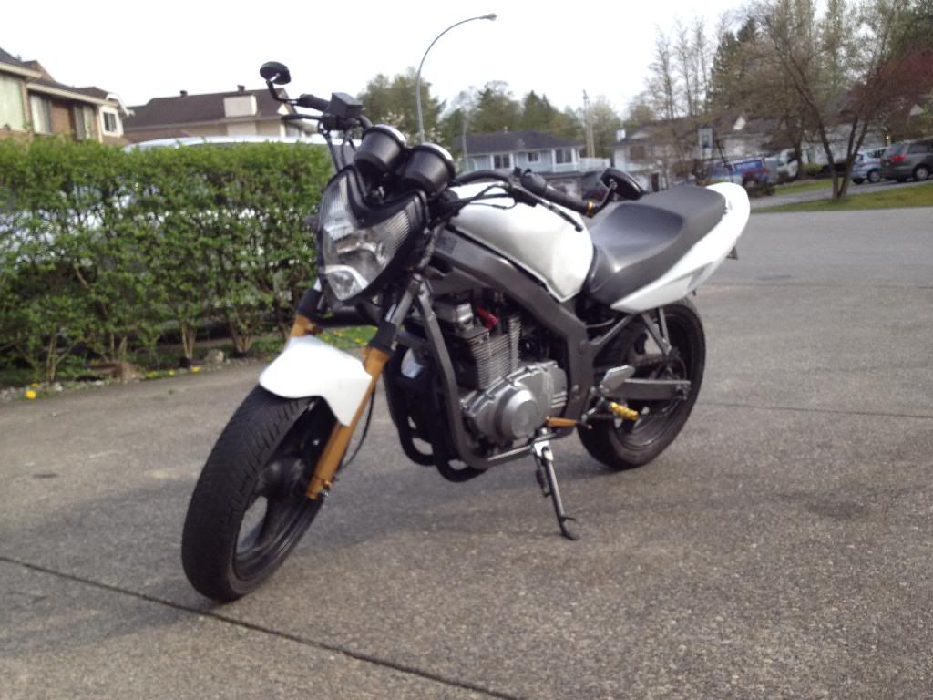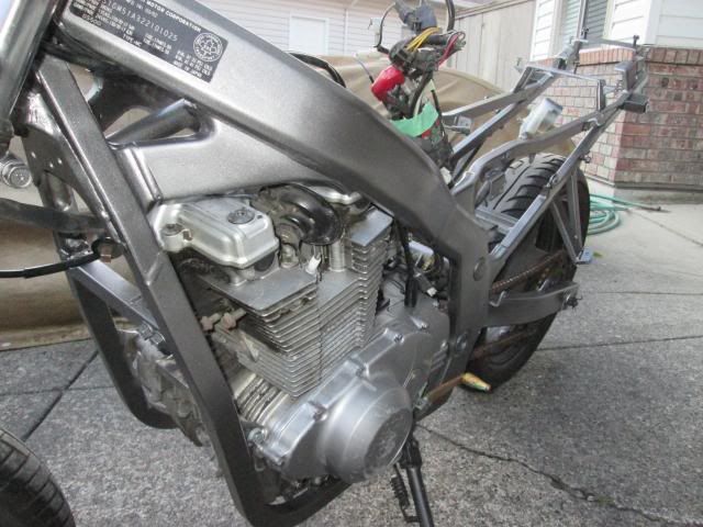 I have not painted the bike yet, I insured it on Friday and took it for a rip. Had quite an adventure, after 15 minutes of riding the bike died at a stop sign. Started back up using the throttle. Rode fine for another 2 miles and then started bogging down and died while going 50MPH, pulled over and it wouldnt start. Waited for about 10 minutes and it fired back up, started heading home and it died after another mile. Waited about 15 minutes this time until it would fire and made it .5miles, then waited 20 minutes and made it about 300 yards or so, waited another 15-20 minutes and made it another 300 yards. By this point the battery pretty much drained from all the cranking and I had to push it home the remaining 2 miles (not fun).