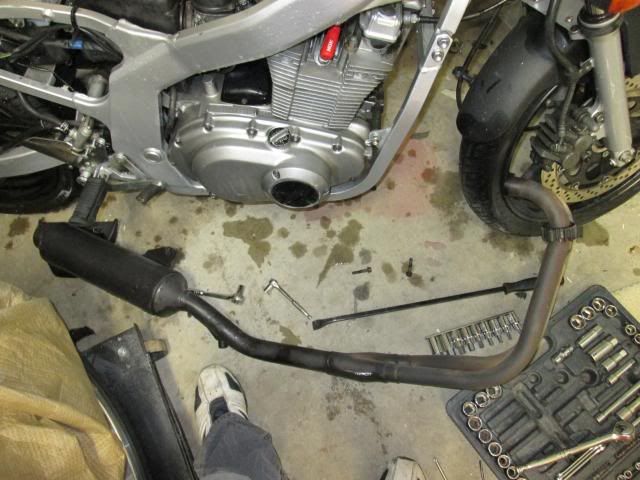 Looks real nice I like the frame color now any plans on replacing the exhaust or at least painting it to get rid of rust? Sell the fairings on here if the price is right I might be interested  :woohoo: