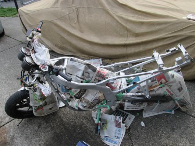 Thanks guys, the rest of my parts are almost here so reassembly can hopefully commence this weekend. Progress lately has been slow, got the chain cleaned/lubed today and the foot pedals painted/cleared. Haha no I will not be rattle canning the rear fairing/tank. Those will be primed and painted using hvlp guns and a compressor.