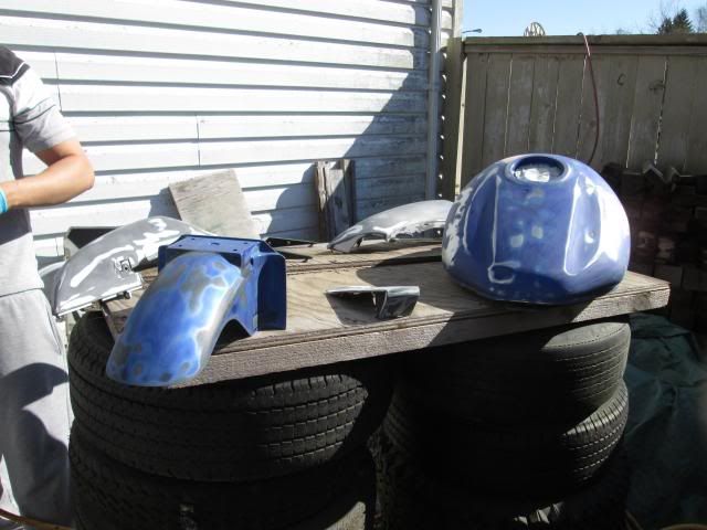 still working on the fender, don't know what possessed someone to paint this thing flat black. There's no damage to any of the parts, they should have plasti dipped it and saved me the work!