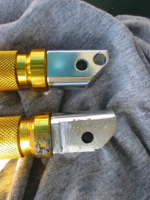 Went to put the pegs on today and it turns out they are 2mm too wide for the brackets. I think they might have sent me the front pegs instead of rear pegs.