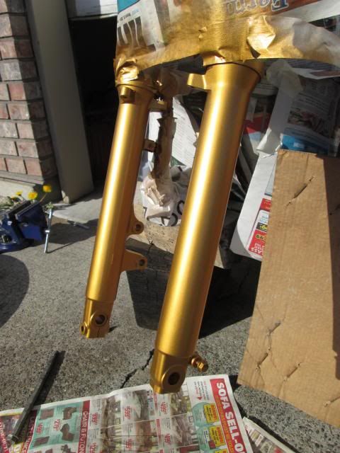 Thanks for the comments guys. The frame is painted DupliColor Gunmetal, the gold is VHT Metallic Gold engine enamel with Duplicolor wheel clearcoat on top.