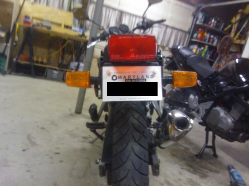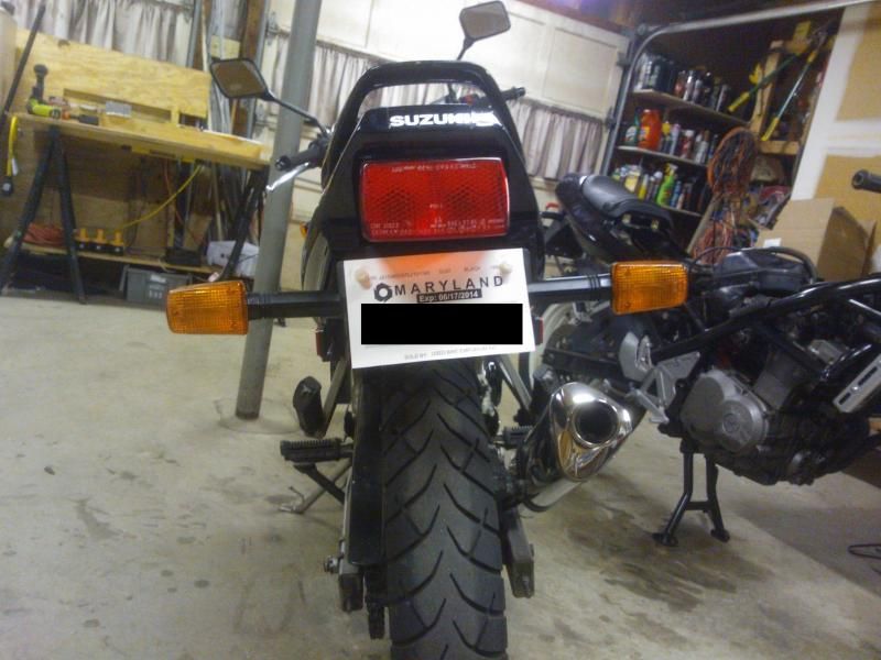 You can already see that without much delay, I hacked at the whale tail, shortened the rear stalks, and rotated the reflectors to be parallel with the fairings.  It already has a K&N lunchbox, Re-Jet, and Yoshimura Exhaust on it.