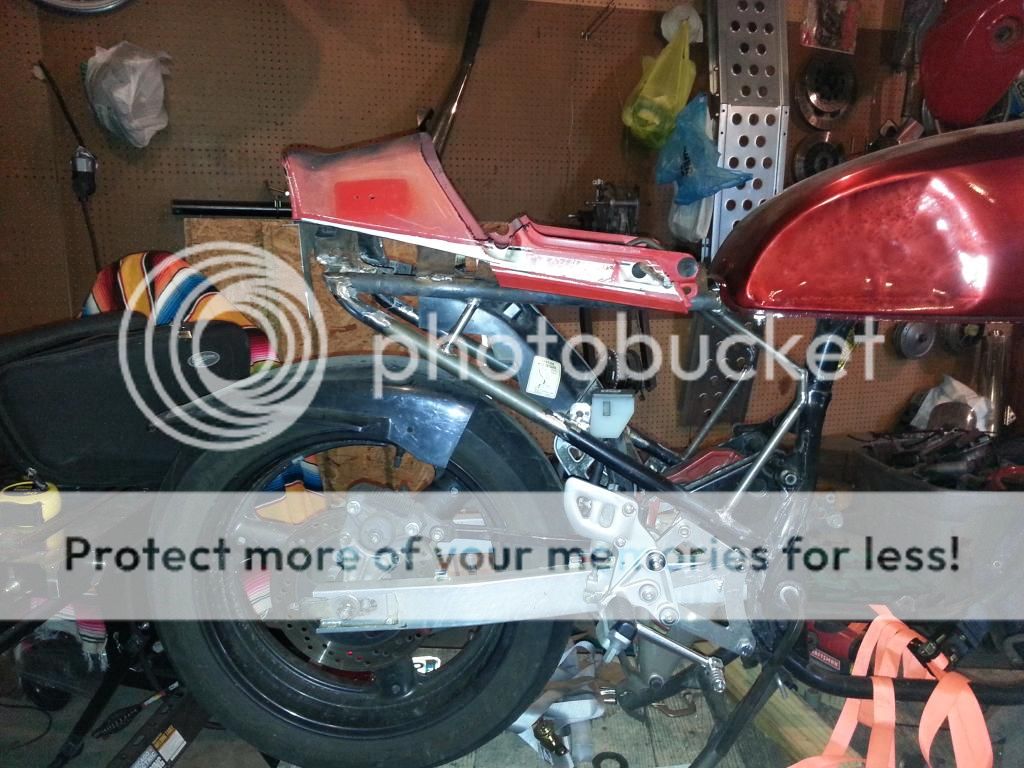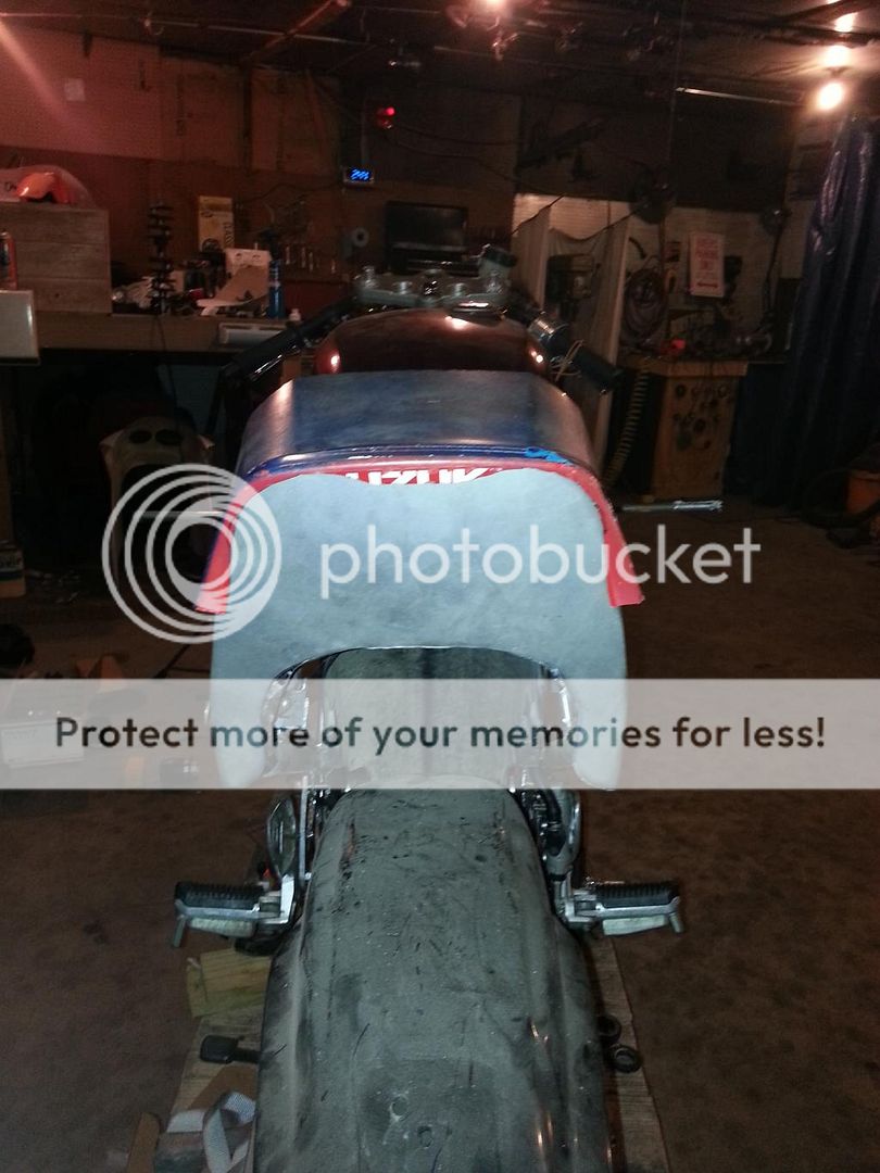 So I've been pretty busy with other stuff lately and haven't had much time to work on the old GR. And most of the stuff I've been doing wasn't very picture worthy.... but I've been concentrating on the seat mostly. Cut the plastic "wings" off the GS550E seat, made a plastic seat pan using the stock keyed release, etc: