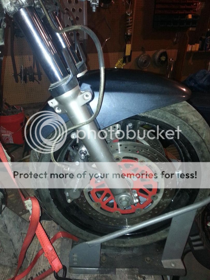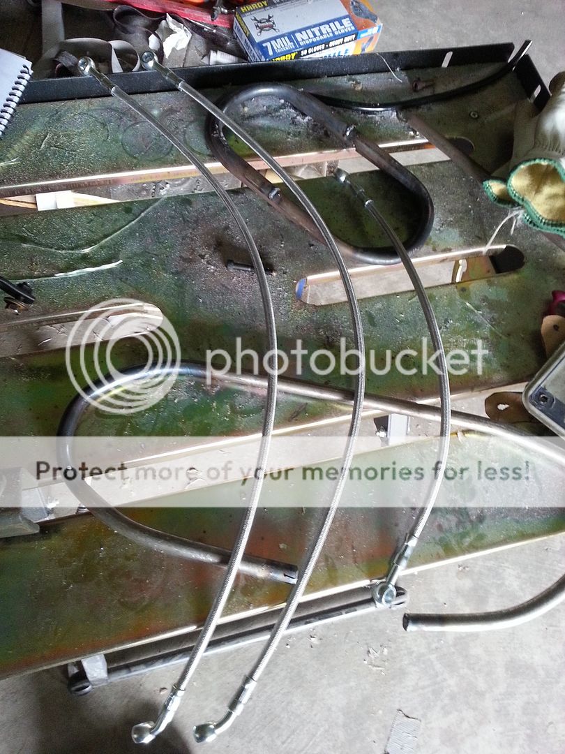 Bandit fender needs proper bolts, and the stainless lines are obviously WAY too long. But it's still progress....