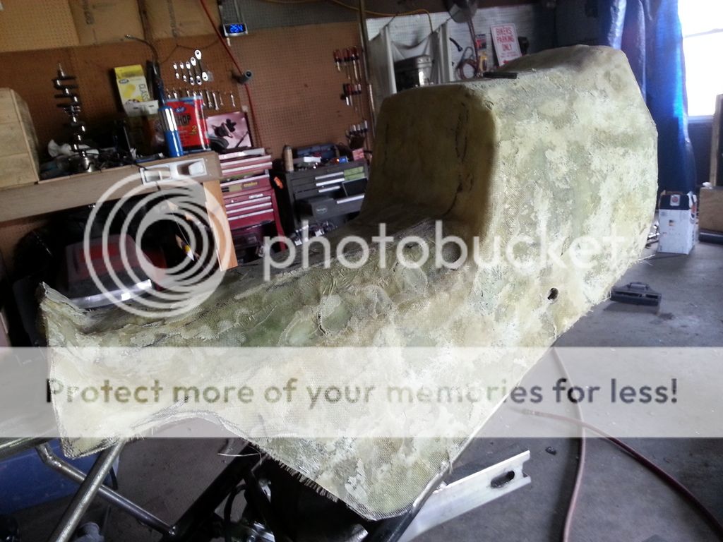 Finally, an update! I've been busy with other stuff but I did get to work on the seat some more. The last time I messed with fiberglass was back before the internet was around, so I'm learning as I go. First thing I learned: fiberglass mat pretty much sucks to work with. What a mess..... but here's where it sits at the moment: