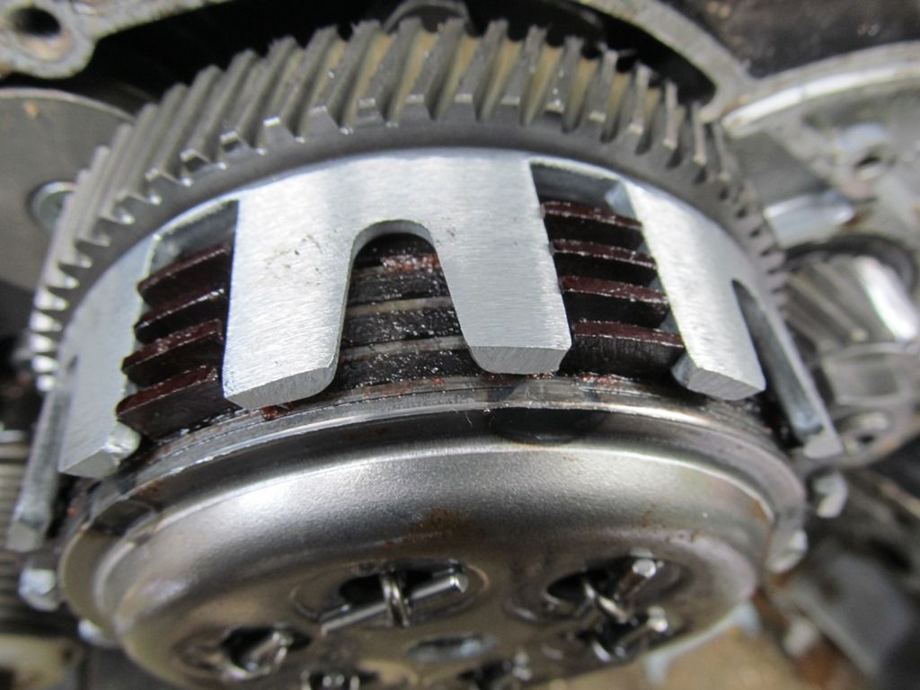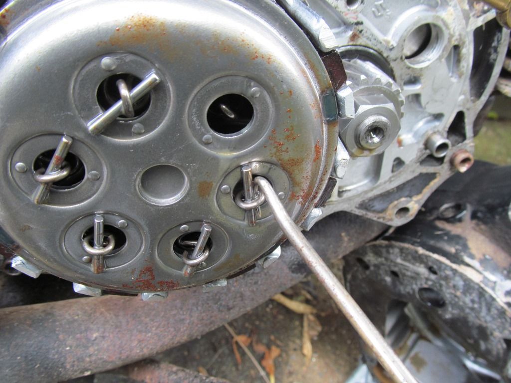 Bit of a trick with the older clutch baskets that don't use bolts - gasket seal hook works well