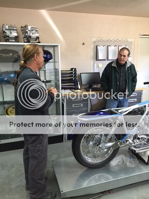 This is a picture taken at Colorado Norton Works about a month ago. I am on the right. Matt Rambow the owner is on the left. Matt is world known for his beautiful Norton's. He was featured on Cafe Racer TV a couple of times.