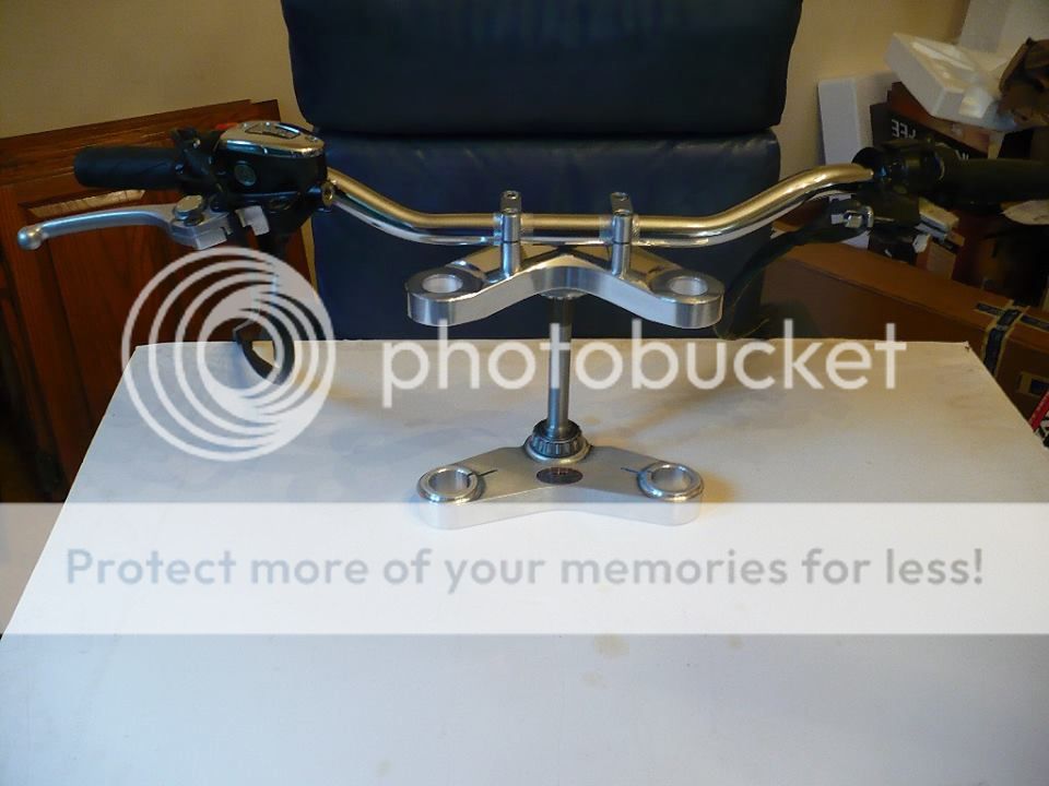 Custom billet yokes designed for 1" bars (Norton had 3/4"). This allowed me to use the 2014 Triumph switch gear, adjustable levers and master cylinder. The original norton yokes were cast iron painted.