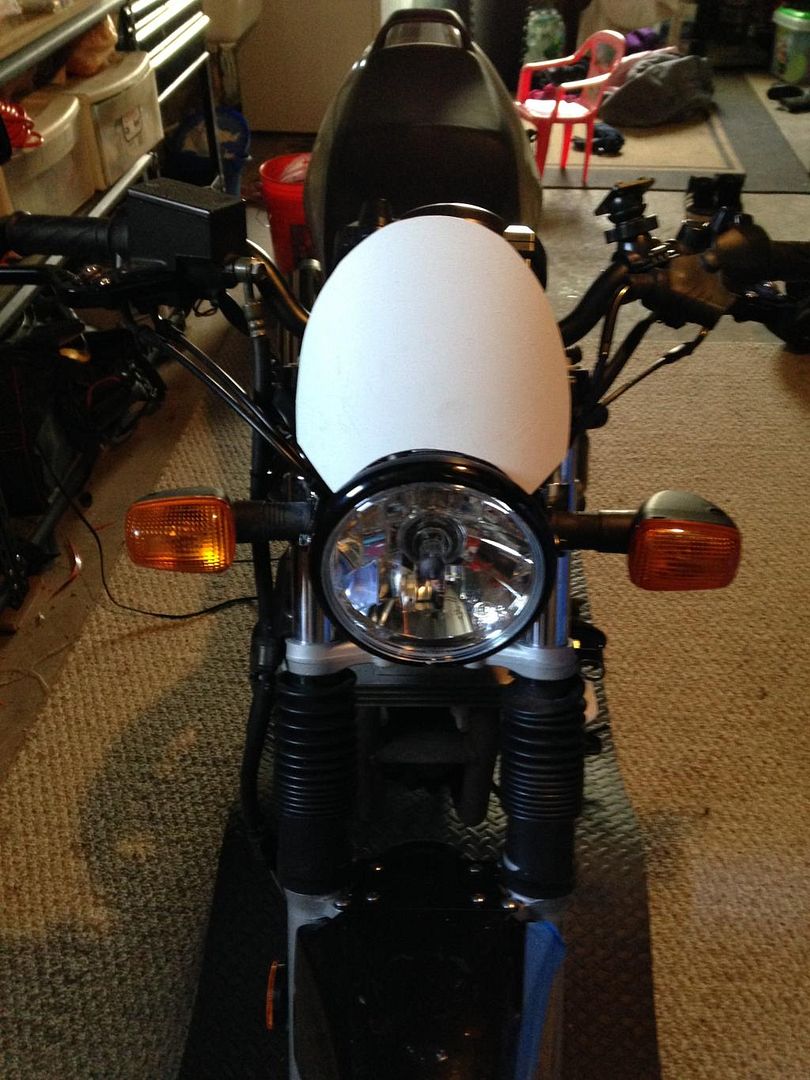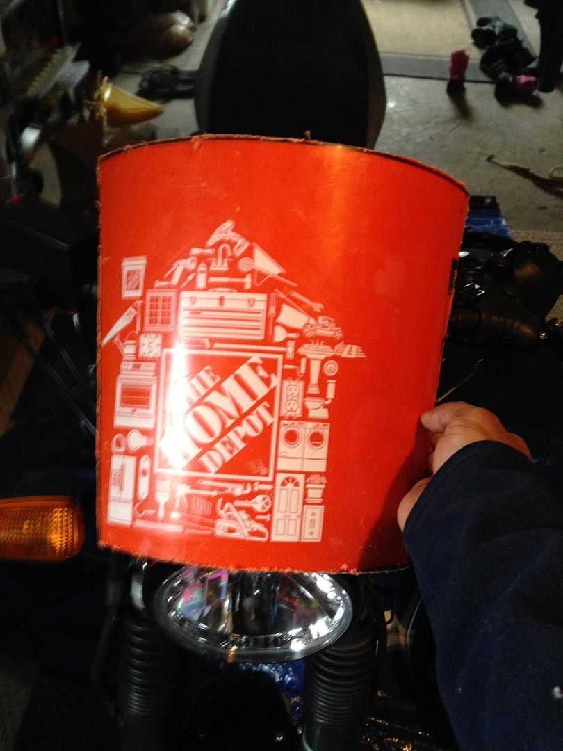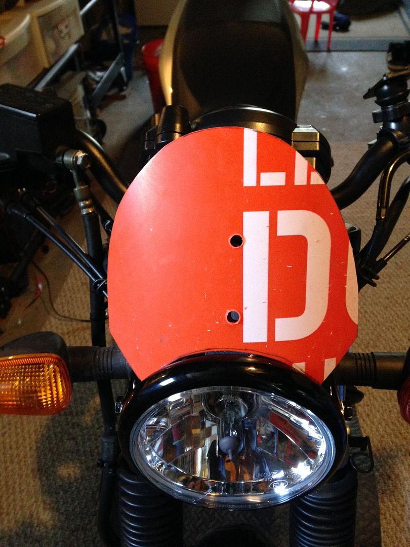 Not an original idea, but I have fallen in love with this super cheap fly screen mod.  I was installing a digital Speedo and wanted a small fly screen to hide the wiring and mounting bracket.  Came across the idea for using a 5 gallon bucket.  It cost me next to nothing but a few bolts I had lying around, some left over spray paint and a piece of scrap 1" flat steel.  Best part about this mod is that it is so cheap and easy that I can change the shape, color, decals, camo wrap etc.  Really lets me personalize my bike.  I'm thinking I might use it as a number board with a little gstwins decal on the bottom right idk.  Maybe I'll trace and cut out one of those burger king crowns lol.  But I've already cut out and prepped 6 different ones which I will experiment different designs with.  Each $2 bucket yielded about 4 screens.