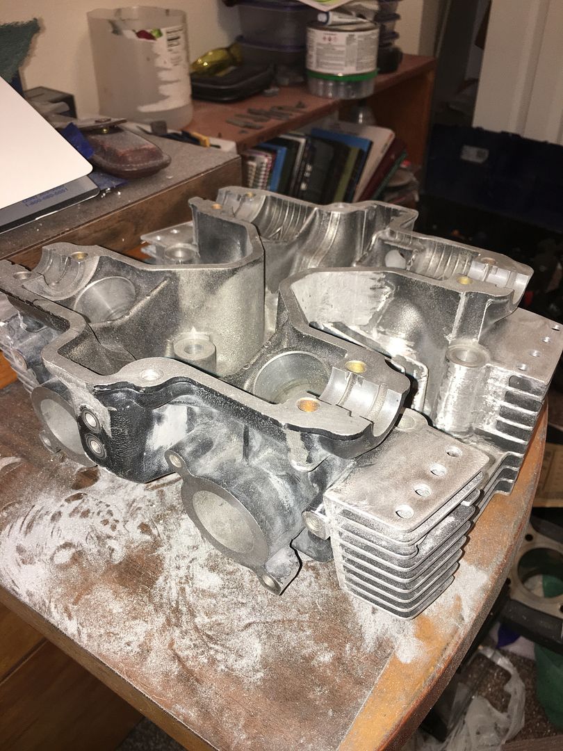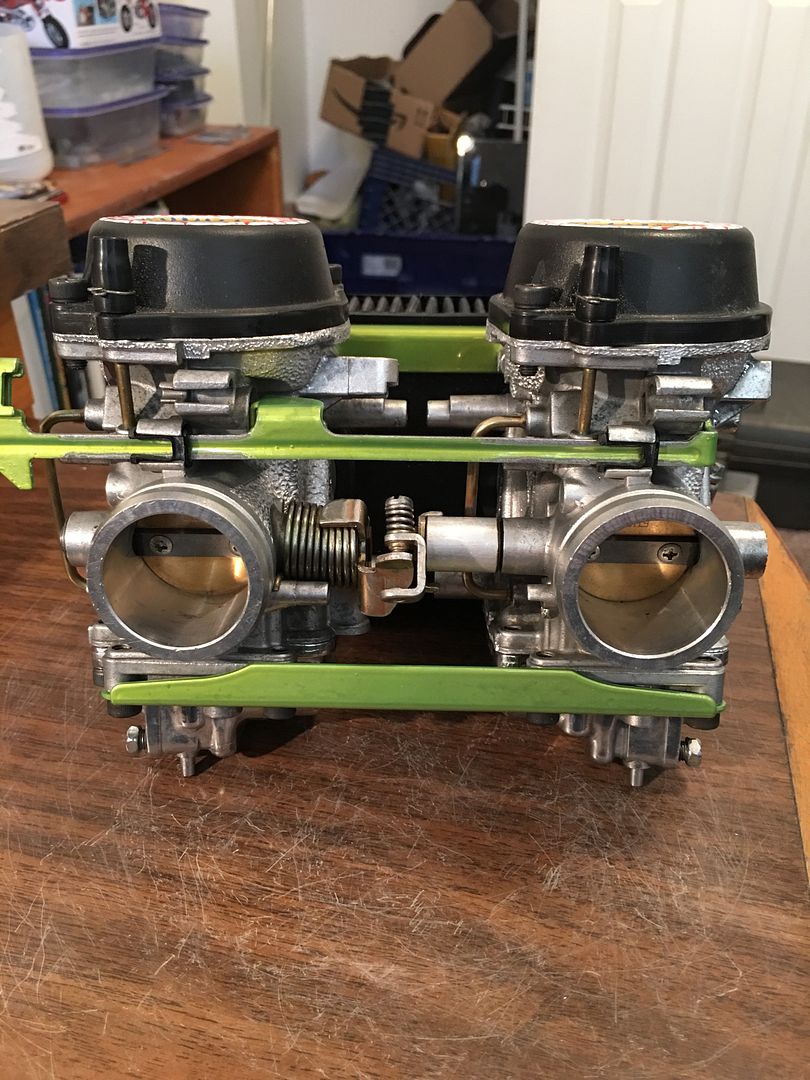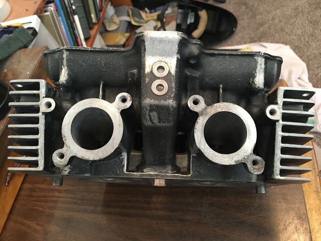 I forgot I had these pics to post too. Well besides a little more polishing and putting the guts back in the carbs, they are just about done. Here they are loosely put together for pics.