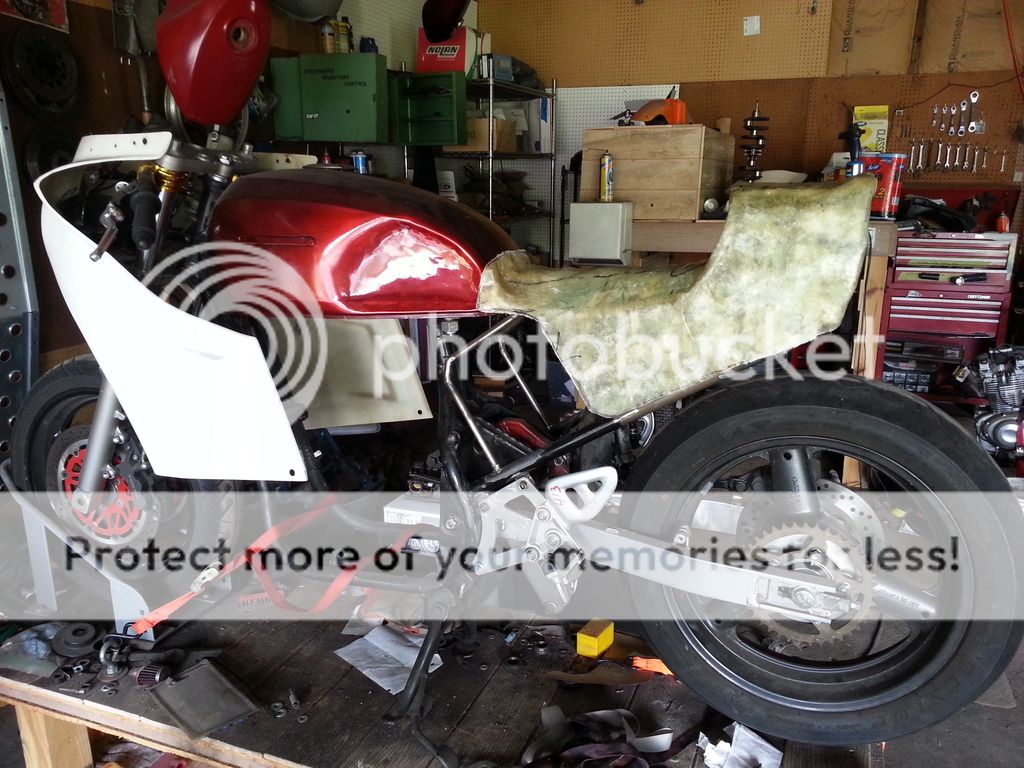 Jools: I'm making a glass seat for my GR650 from scratch (the thread for it is here on the Twins too). Already have the tape, foil, wax, and the first layer of cloth & mat down. Just trying to plan ahead for the rest of the seat project.