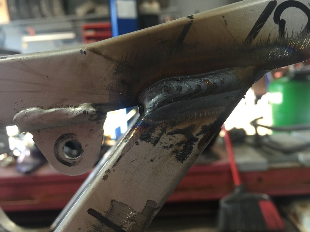 But once on the bike, I didn't like the point. Looked too much like it belonged on a custom chopper. So I cut off the point and welded in a bar to make it run straight across.