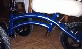 i striped both rails. opinions? lose the lower one?, tbh i think if i motorise this thing, ill build a pushcart. unless i can cannibalise a currie ezip. friend of mine allowed me use of his fabrication equip. idk where id mount the battery pack , if i gas it,  it will be on a pushcart using one of the ezips rear wheels. that way i can bring it inside. i DID see a 350 watt hub motor in a 12 inch bike wheel. idk. next 24 hours, im motionless. the self fusing ankle feels like it let go. course it JUST started to self fuse. it will be fine. cause ill be damned if they have to fuse it with screws. that xray looks like the poor soul jumped iinto a bucket of screws at ace hardware. i have to modify the aircast due to the swelling. its a hair too small, and other one may be too large. but ive got 36 hours before next doc appt, soooooo. time to break out the mcgyver. ohhhh sorry lol, the first run on striping. still thinking of enamel striping it.