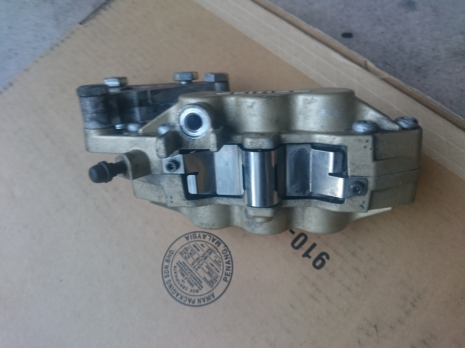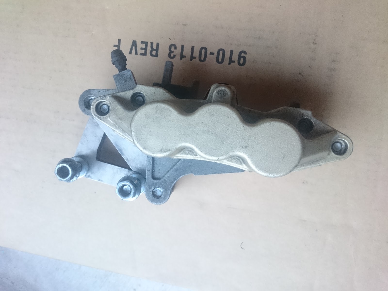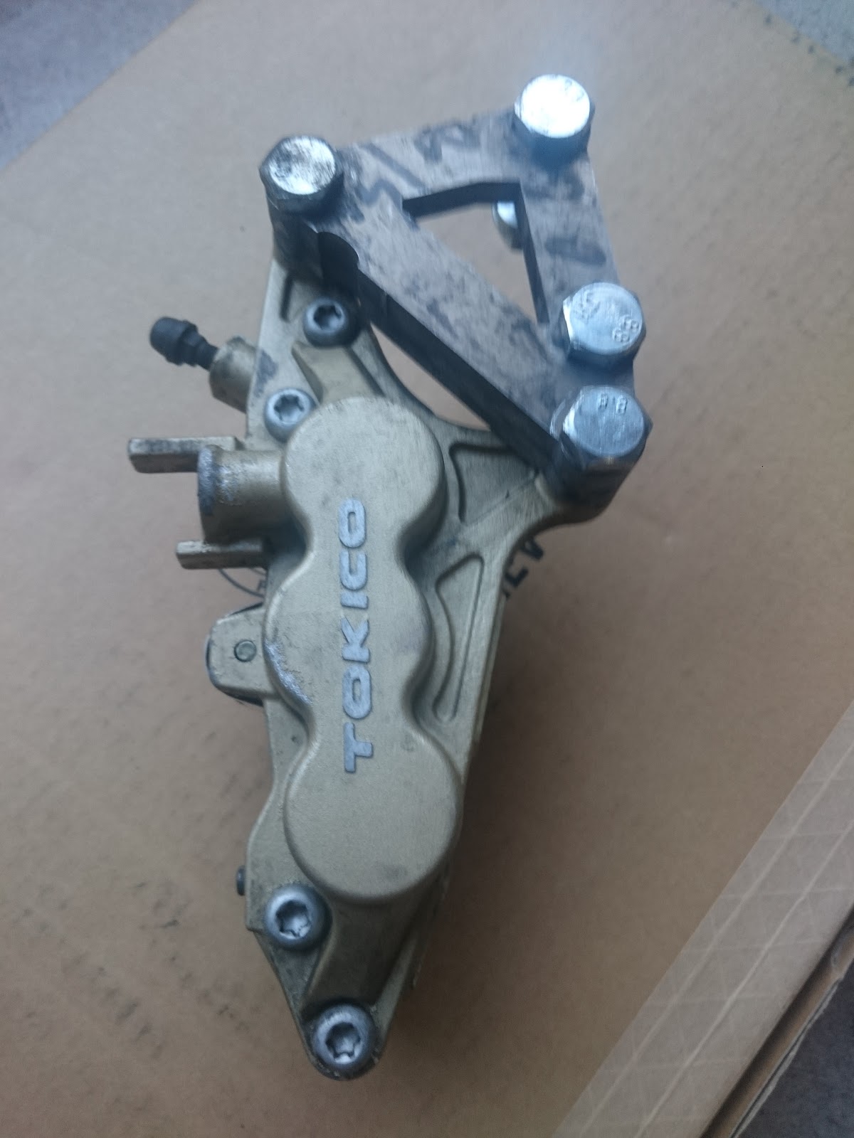 Includes a Hayabusa 6-piston caliper with EBC pads that have ~50% life left (?). Grade 8.8 bolts included.