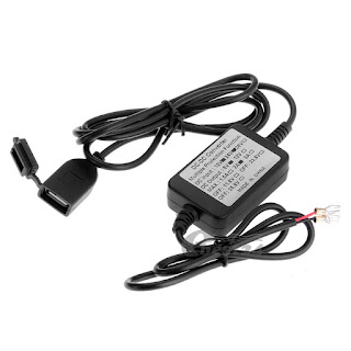 Ebay is your friend: a 12V to 5V 2A converter is easy to find. I glued it inside the headlight housing using duble side tape.