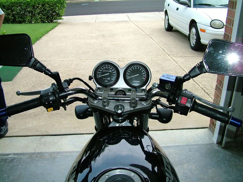 What I was trying desperately to explain lol in my above post was getting some bars that have a steeper/longer upwards curve than the stock bars... and then sitting on the bike with the bars mounted in the risers, tilt the bars back towards you until you feel comfortable with how close they are to ya.