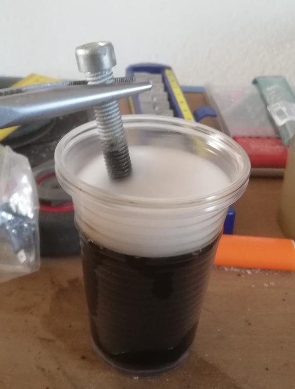 There was  a complicated story with the tank - I thought mine is fine but when I removed all paint it turned out that it's covered with dozens of micro-holes. So I found a guy in Cloatia with some spare GS500 tank, bought it, went to Croatia to take it (I live in Montenegro), and now I'm busy with restoration. It mostly fine, but at the bottom it was covered with rust, which already started to create 'caverns'. So what I did: