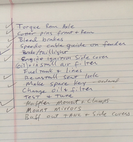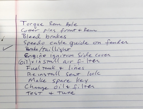 It's down to this list. Even after all this time and effort, there is a number of items. I have just about everything except a couple bits... cotter pin and will need to have the key made.