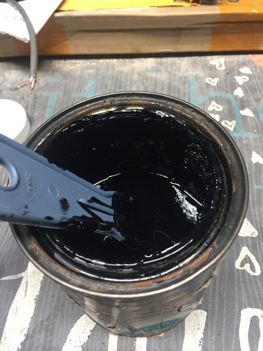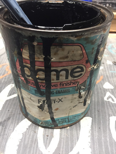 This can of black synthetic enamel is the oldest, longest open can of paint I've ever used. This can was first opened about 35 years ago. It was stored upside down and amazingly it's still perfectly good.