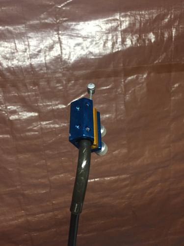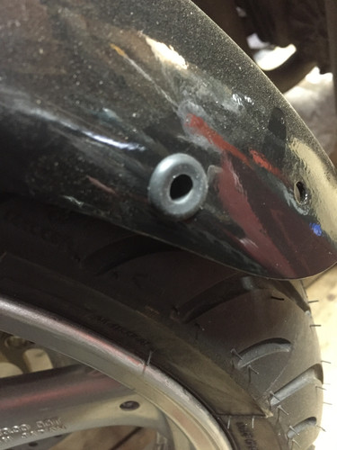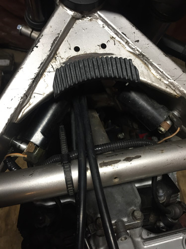 Another small job done, the speedo cable guide. The original was all rubber and broken. It was removed to repair and re paint the fender.  The plan was to cut it down and reuse the base as a grommet and standoff. It's been misplaced or tossed in the bin. That is starting to happen, the job has dragged on, small parts have been moved more than once and now can't be found.