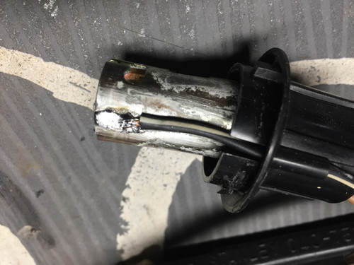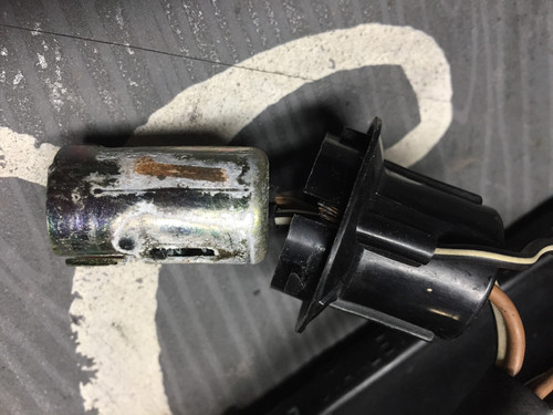 The metal socket shell pushes out with a little force. The  wire and shell are corroded., you can see the rust spot. All that makes contact is the press fit against the wire.
