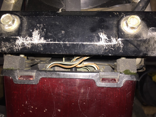 Those little foam blocks that Suzuki wants $5 each for the fuel tank,  exist on the taillight too. I had to re-glue them with contact cement.  The don't actually touch until the light moves a fair bit... I think they're just to limit motion.