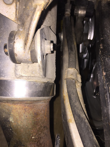Clamps, removed, turned, and retightened. Out of the way, plenty of clearance to the swingarm.