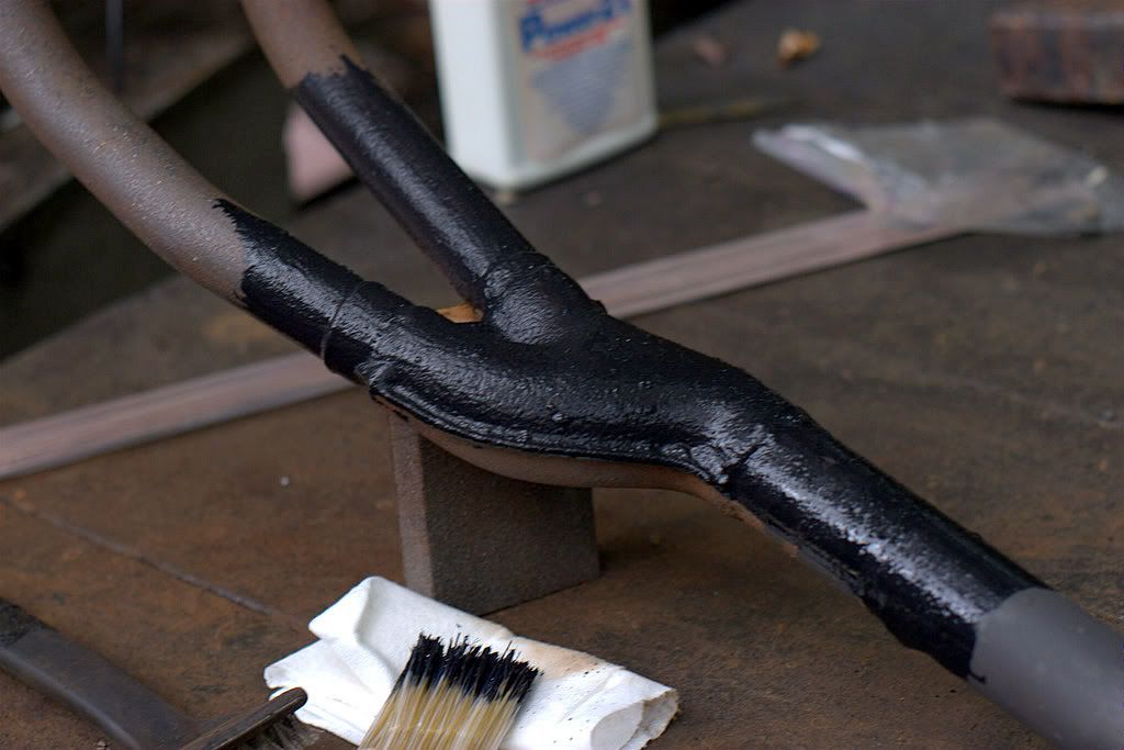 I coated the hard to reach lower and end caps while it was off the bike, and left the mid section so i have something to hold on to when mounting it on the bike.