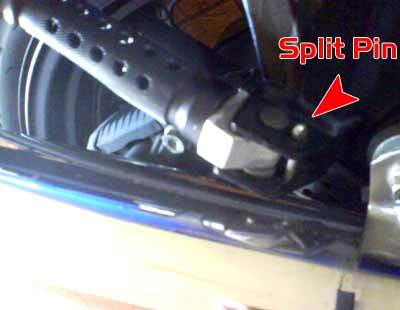5. drill a hole for a bolt or thick split pin to ensure the rear footpeg wont rotate past that position