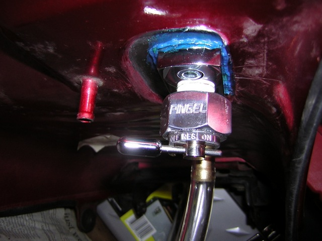 The stock frame-mounted petcock has three settings: ON, RES, and PRI.